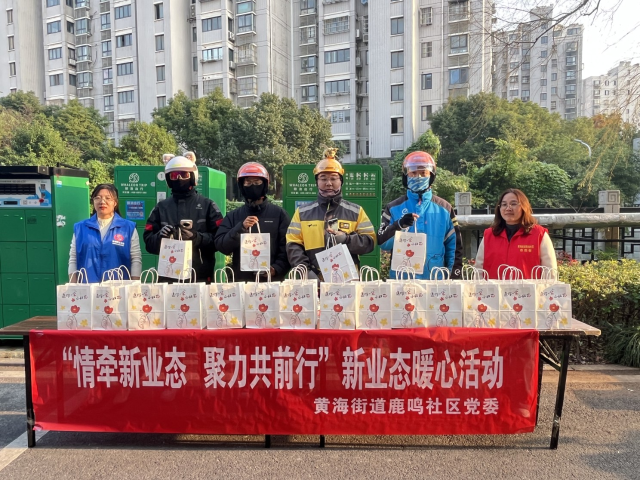 近日,黄海街道鹿鸣社区以“情牵新业态,聚力共前行”为主题,开展了一场内容丰富、暖意浓浓的暖心活动,用实际行动为外卖骑手、快递员、网约车司机等新业态从业者撑起“避风港”、筑牢“暖心巢”。