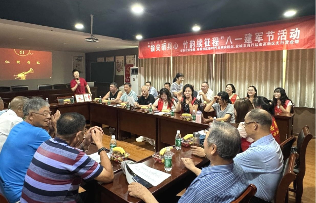 为庆祝“八一”建军节,弘扬爱国拥军精神,近日,新都街道裕新社区党委、盐城农商银行盐南高新区支行营业部在裕新社区新时代文明实践站联合举办“指尖砺兵心竹韵续征程”“八一”建军节活动,以红歌传唱、非遗体验等形式,让退役老兵和烈士家属在互动中重温红色记忆,感受传统文化魅力。