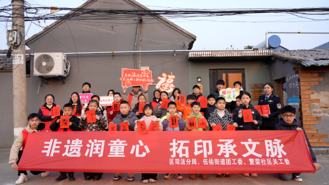 为深入传承中华优秀传统文化,厚植青少年家国情怀与文化自信,丰富未成年人寒假精神文化生活,近日,盐南高新区司法分局、伍佑街道团工委、繁荣社区关工委联合开展“非遗润童心拓印承文脉”主题实践活动,让法治护航成长,让非遗浸润童心。